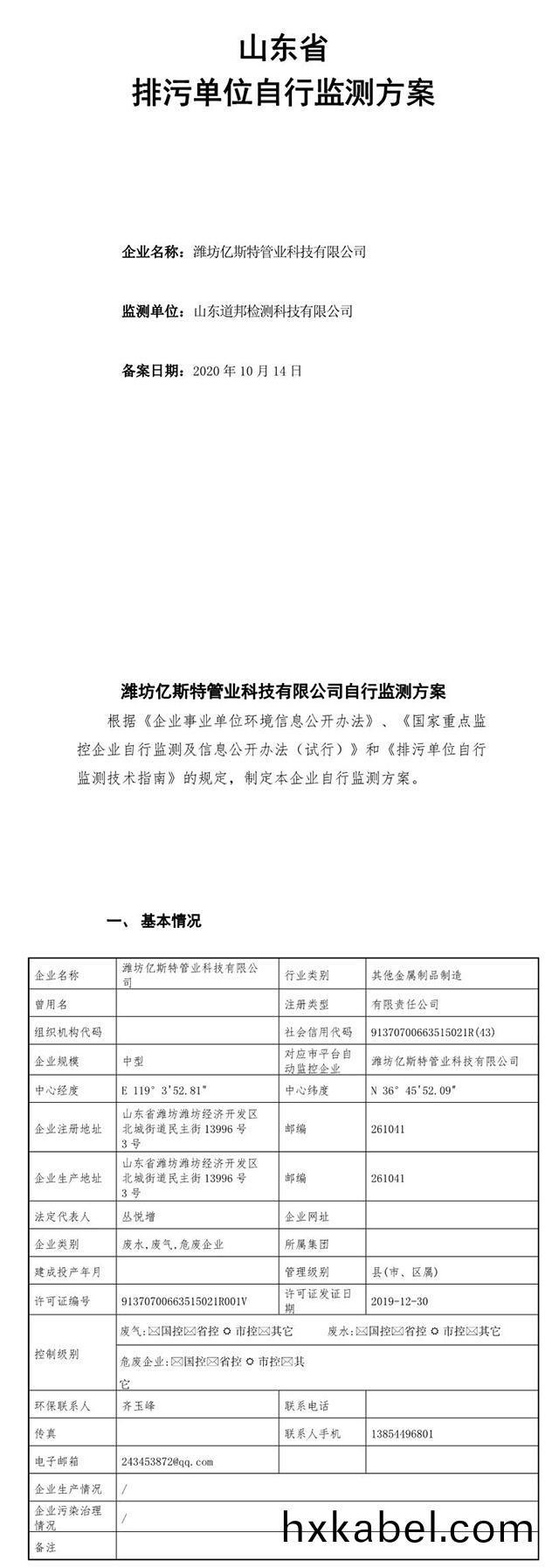 潍(wei)坊亿斯(si)特(te)管业科技(ji)有限(xian)公(gong)司自(zi)行(xing)监测(ce)方(fang)案